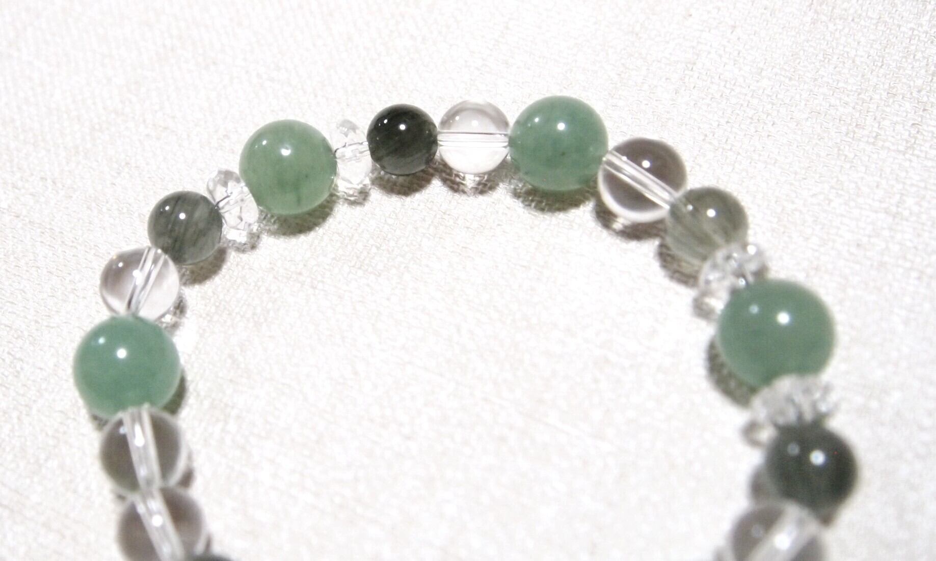 *グレード:アベンチュリンA、グリーンルチルクォーツAA、水晶AAA