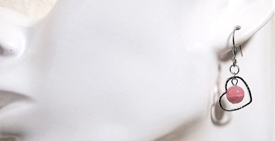 ピンク サーモン 女性 レディース ハンドメイド 手作り 形 縦長 大きめ 枠 石 丸玉 恋愛 型 銀色 20代 30代 40代 50代 60代 70代 両耳 6ミリ 7ミリ