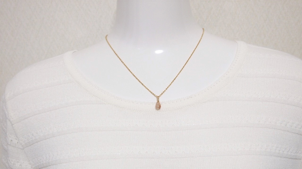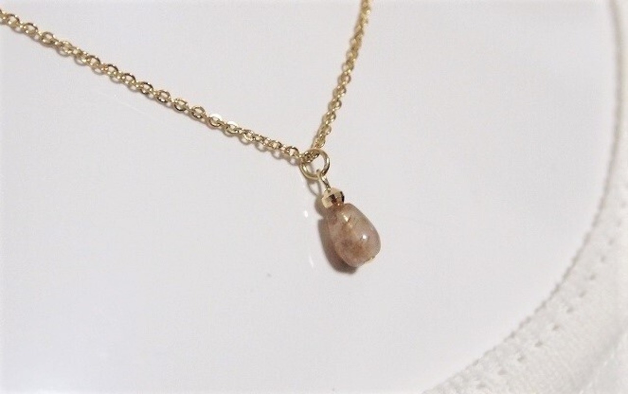 ミニサイズのドロップ形ゴールドルチルクォーツを使用したシンプルなネックレス。
