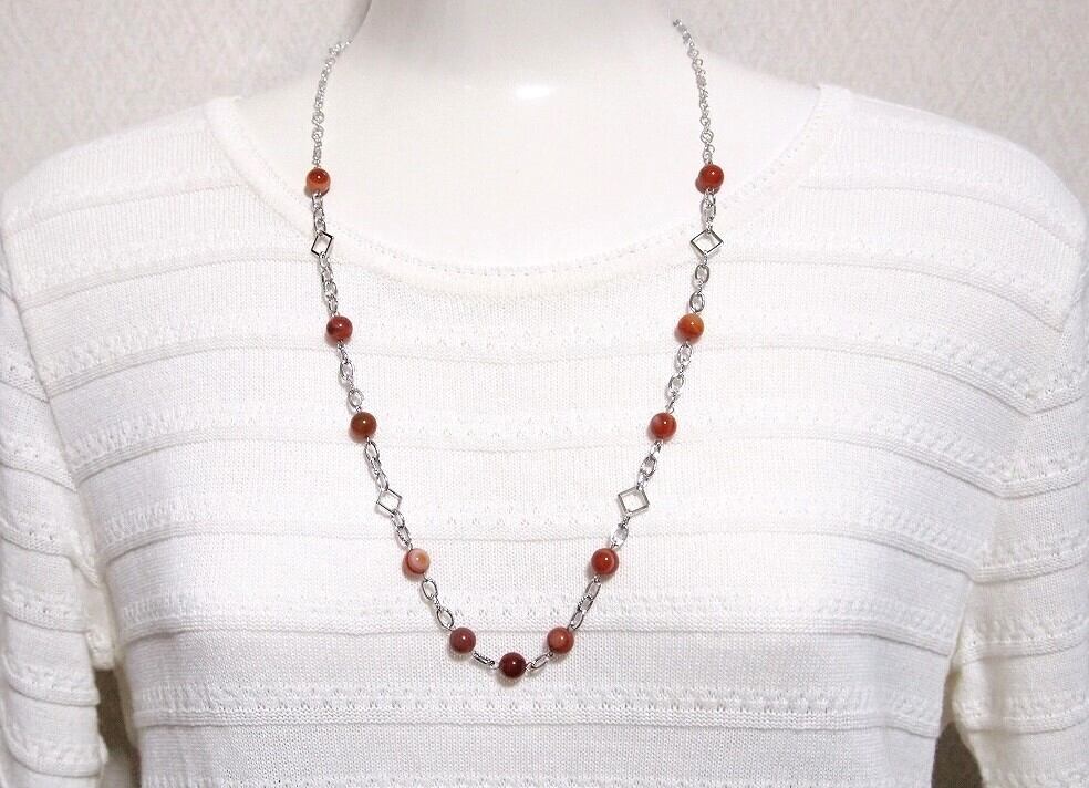 季節を問わず着けていただけるオレンジベースのカジュアルなロングネックレス。