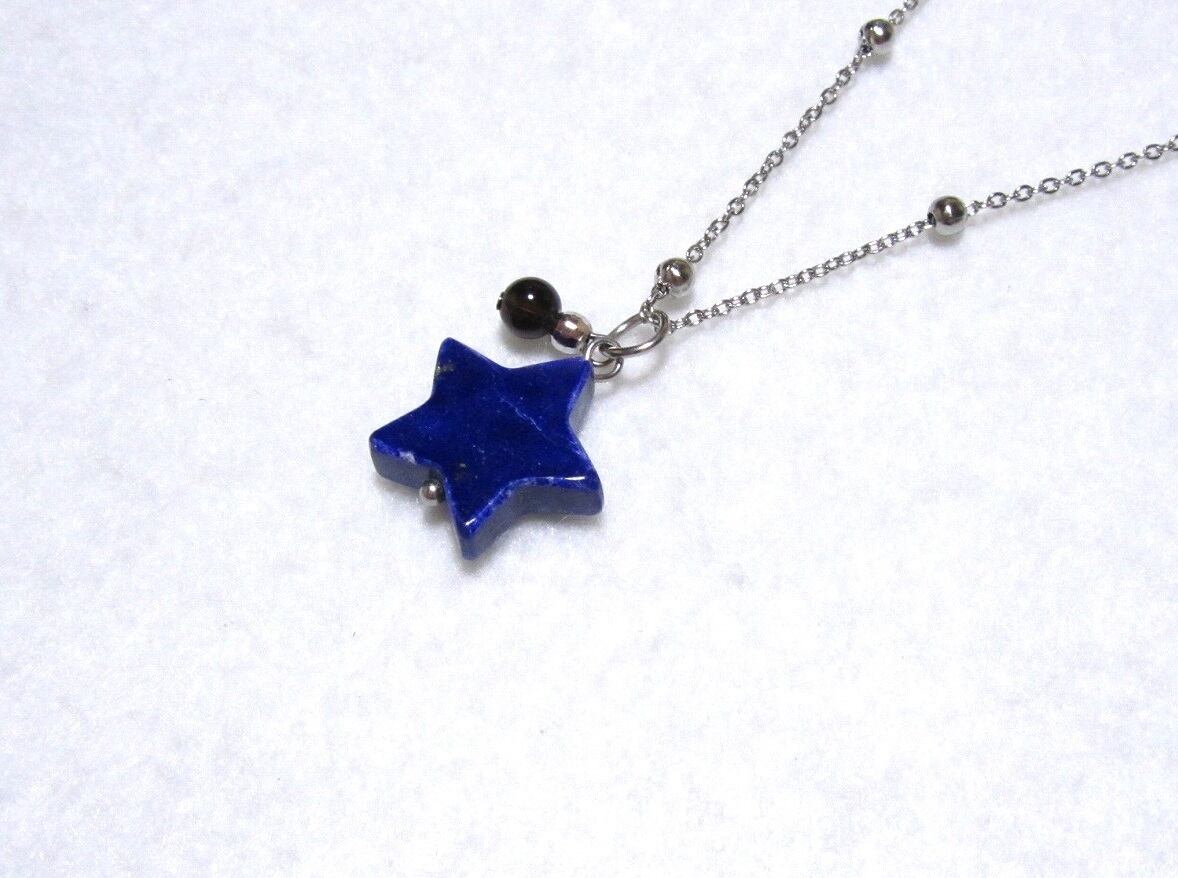 ラピスラズリ・モリオン(黒水晶)のキラキラ星ペンダント 45cm* ネックレス lapis lazuli morion star shape necklace pedant stainless | stoneshopC&D