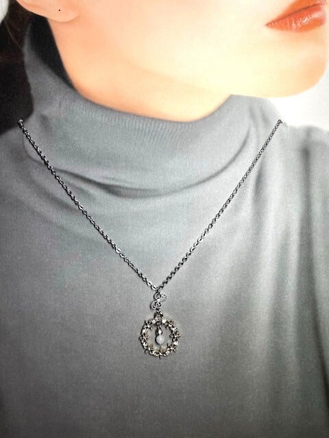 一粒の小さなアゼツライトが輝くリースの中で揺れるデザインネックレス。