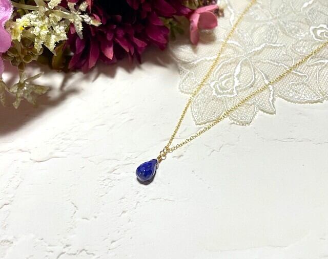 高品質のウルトラマリンブルーが美しい雫型ラピスラズリのシンプルなネックレス。