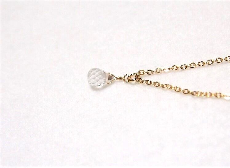 宝石質ブリオレットカットの透明感のある水晶の普段使い可能なプチネックレス。