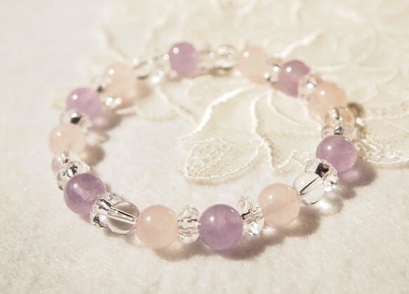*グレード:ローズクオーツAAA(8mm)、ラベンダーアメジストAA(8mm)、水晶AAA