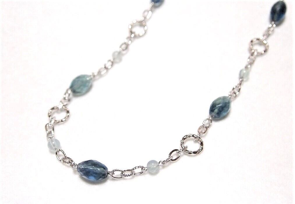 幻想的なグリーンカラーのフローライトが美しいおしゃれなロングネックレス。