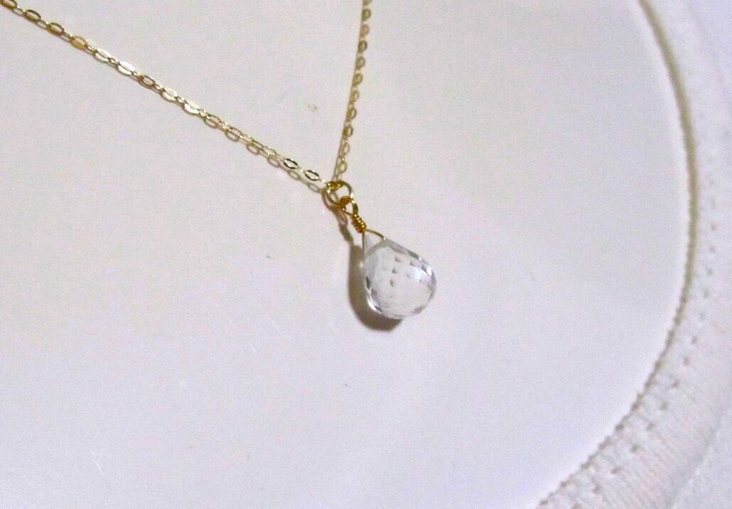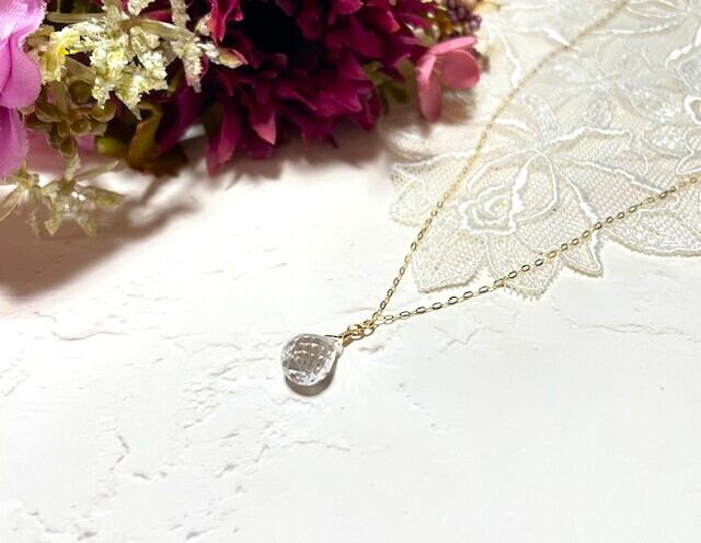 宝石質ブリオレットカット水晶が輝くシンプルな一粒ネックレス。