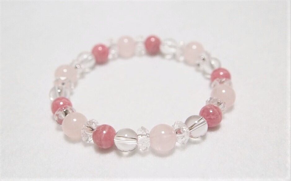 恋愛成就・恋を呼び込み幸運をもたらす ローズクォーツ・インカローズ・水晶のブレスレット rose quartz Rhodochrosite crystal quartz bracelet | stoneshopC&D