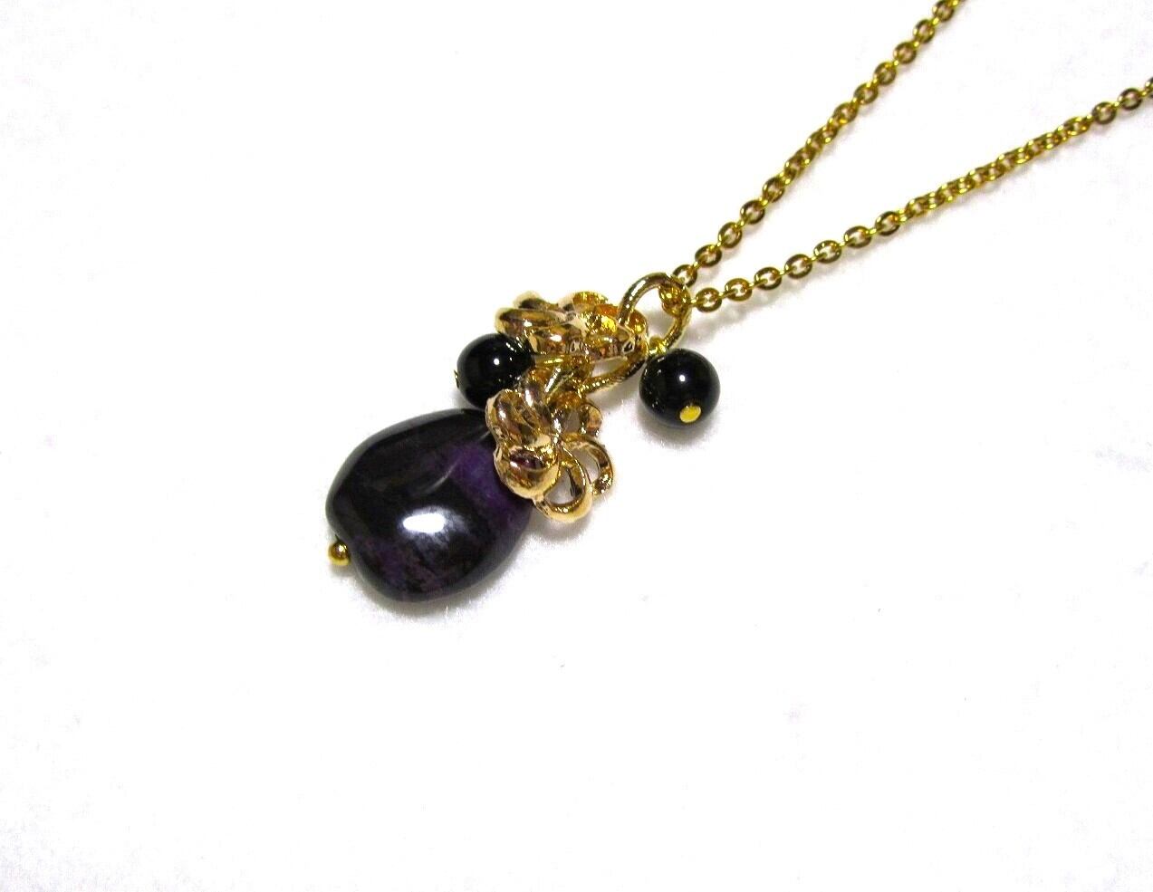 50cm* スギライト・モリオン(黒水晶)のフラワーペンダント56 morion sugilite flower necklace pendant stainless chain | stoneshopC&D
