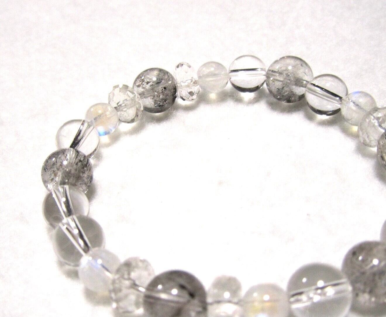 石のみ* レインボー入りエレスチャルクォーツ・レインボームーンストーン・水晶のブレスレット 腕輪 elestial quartz rainbow moonstone crystal quartz bracelet | stoneshopC&D