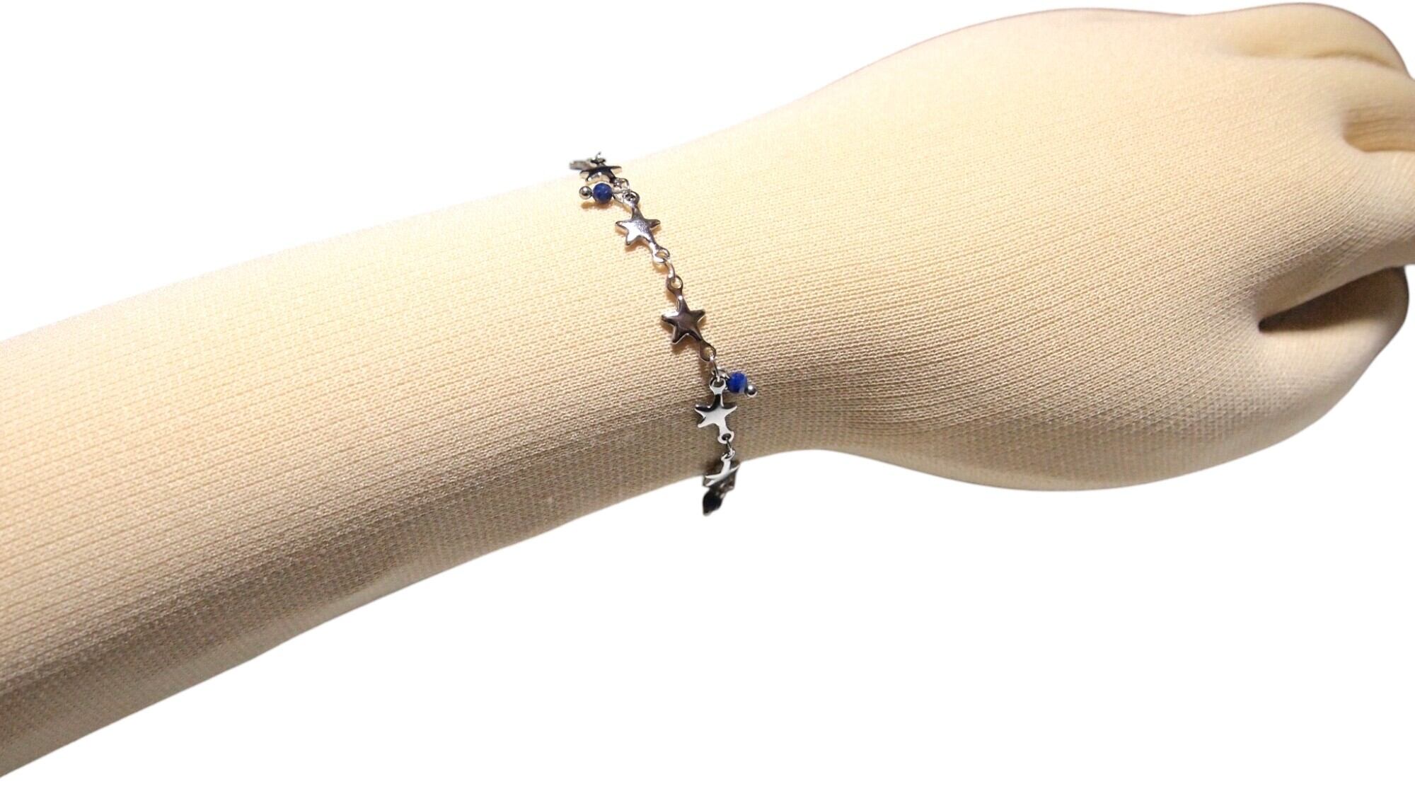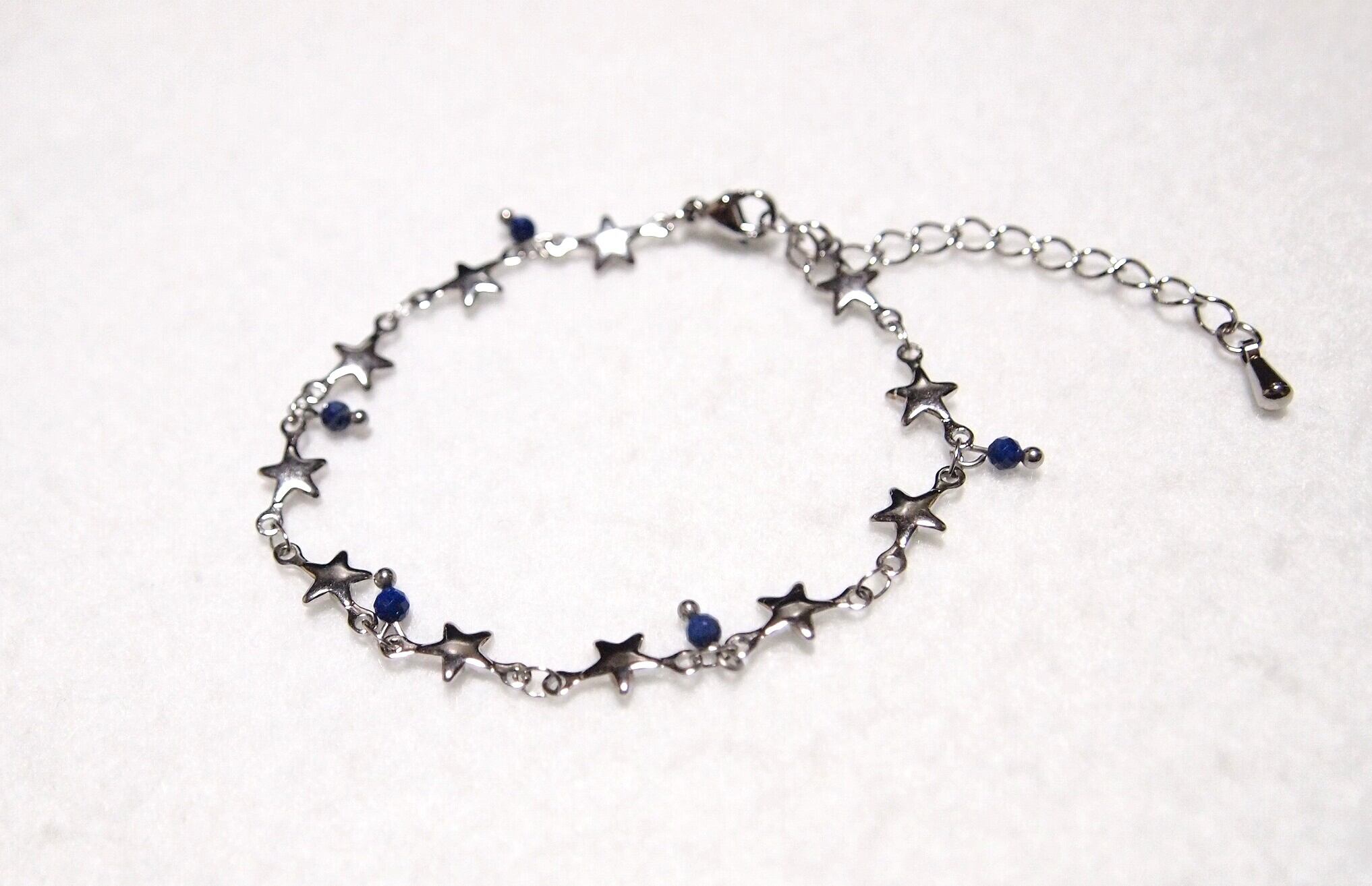 キラキラカットの小粒ラピスラズリがキラキラと輝く星のチェーンブレスレット。