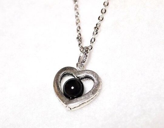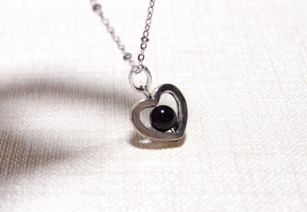 選べるチェーン* 50cm 6mm丸玉 モリオン(黒水晶)のオープンハートペンダントセット イヤリング ピアス ネックレス morion open heart necklace pendant chain | stoneshopC&D